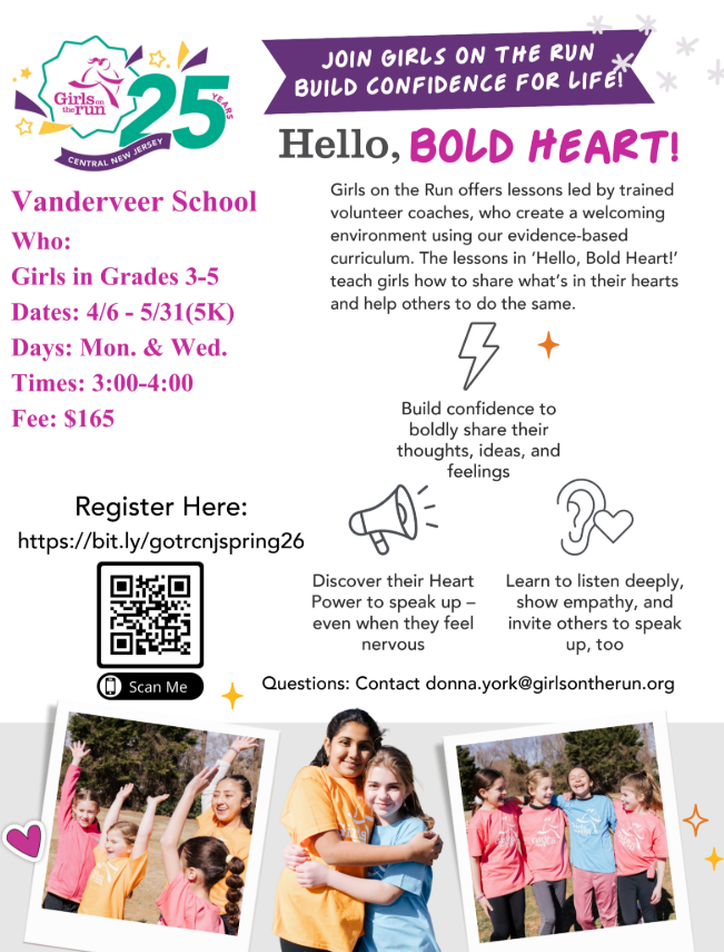 Join Girls on the Run - Grades 3-5 - SCAN the QR Code above to register. |