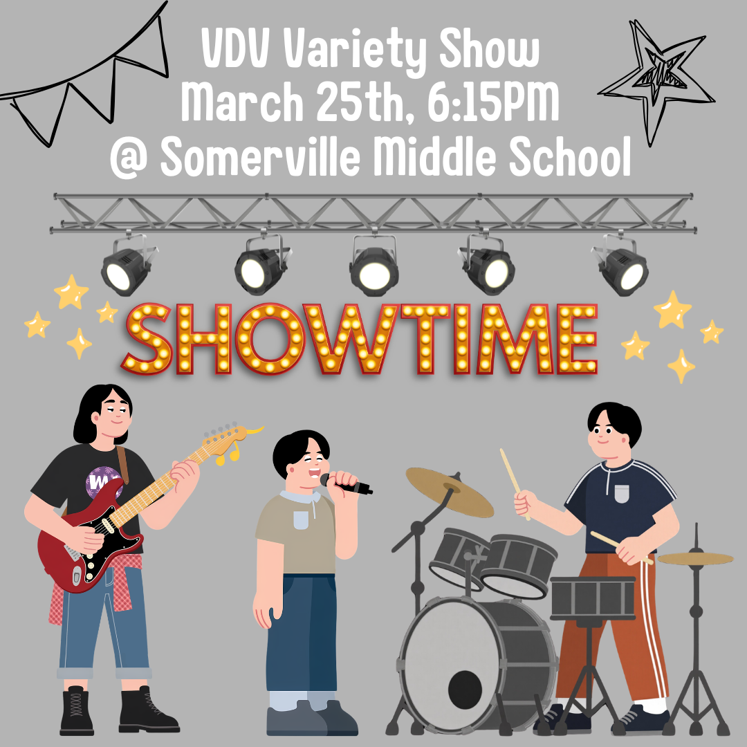 | Join us for the VDV Variety Show, March 25th at 6:15PM in the Somerville Middle School Auditorium. |