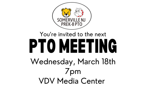Join us Wednesday 3/18 at 7pm in the VDV media center for our March meeting. Help plan the spring events and learn about open board positions for next year! Virtual option available - see our site at www.somervillenjpto.com for link. |