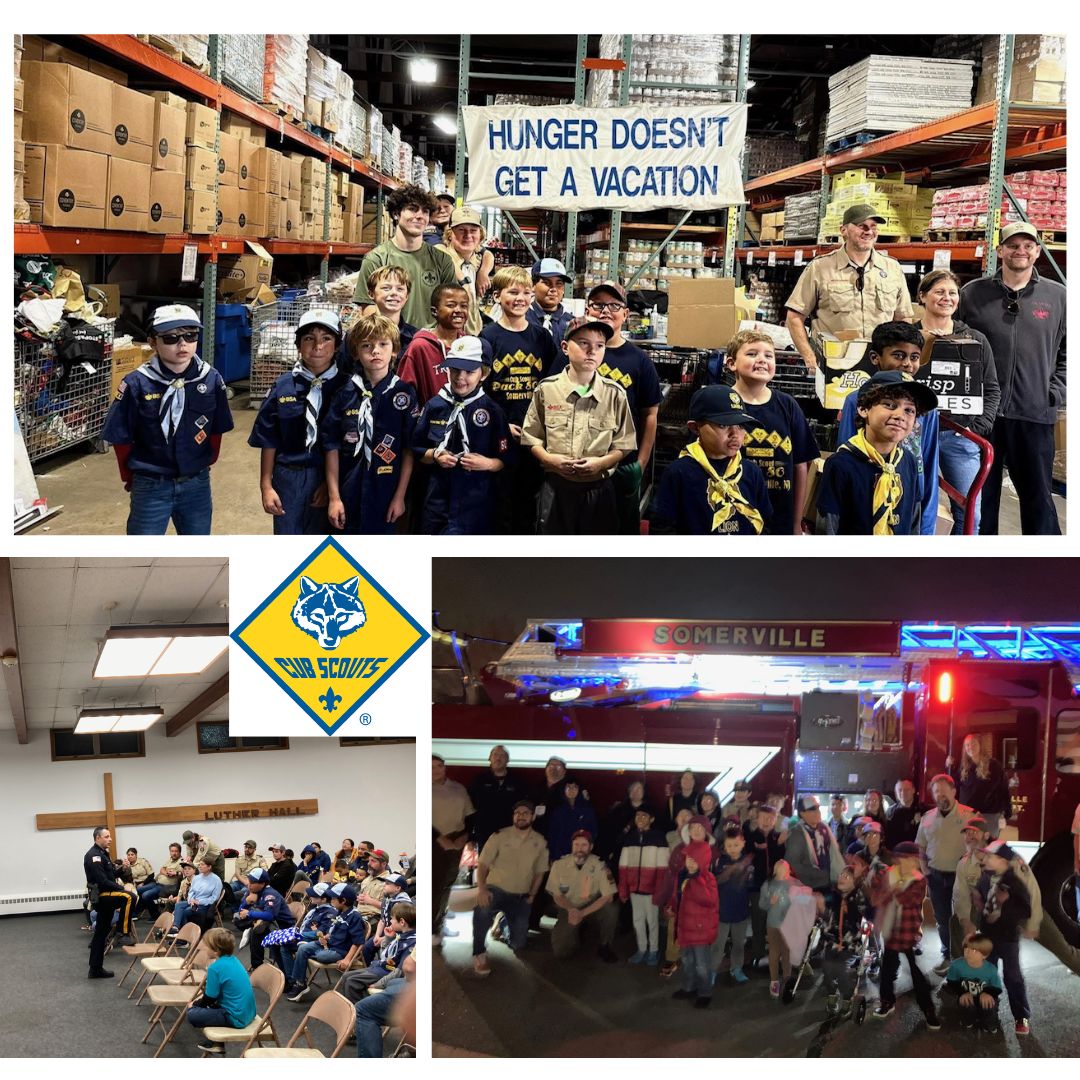 Scouting for Food: In the first week of November, Pack 80 joined Troops 83 and 84 to collect 3,594 pounds of food for the Somerset County Food Bank. We are grateful for the support from the Somerville community helping us help those that face food insecurity as we head into holidays and the winter. Thank you!