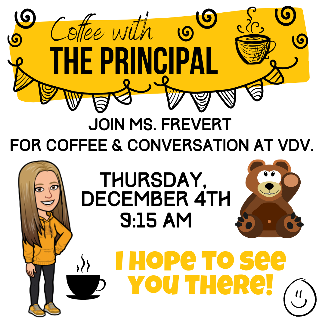 | Coffee with the Principal, 12/4 at 9:15AM. Join us! |